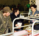 Madeleine Hayeur, éleveuse de porcs, participe chaque année au salon en tant qu’exposante, bien que le coût en soit élevé. Pour que son troupeau principal n’attrape pas de maladies, elle ne ramène pas les animaux qu’elle présente au salon. « Ma participation me donne une occasion de renseigner les gens de la ville sur l’élevage porcin et permet aux jeunes de participer, dit Madeleine. En me faisant complice de la cause des étudiants, j’ai la chance de rencontrer mes clients. »