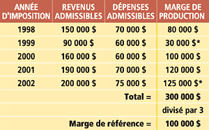 dépenses admissibles = marge de production