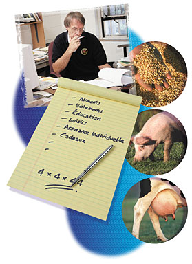 « Il s’agit d’une moyenne de presque 3 500 $ par mois, » indique M. Kohl, conseiller spécial pour les services à l’agriculture de RBC Banque Royale. M. Kohl est en congé sabbatique de la Virginia Tech University de Blacksburg où il enseigne les finances agricoles, la gestion de la petite entreprise et l’entrepreneuriat. « Selon la situation de chacun, un montant de 3 500 $ par mois tiré de la production porcine peut être suffisant ou non. Par contre, il vaut toujours la peine de savoir où va l’argent, » poursuit-il.